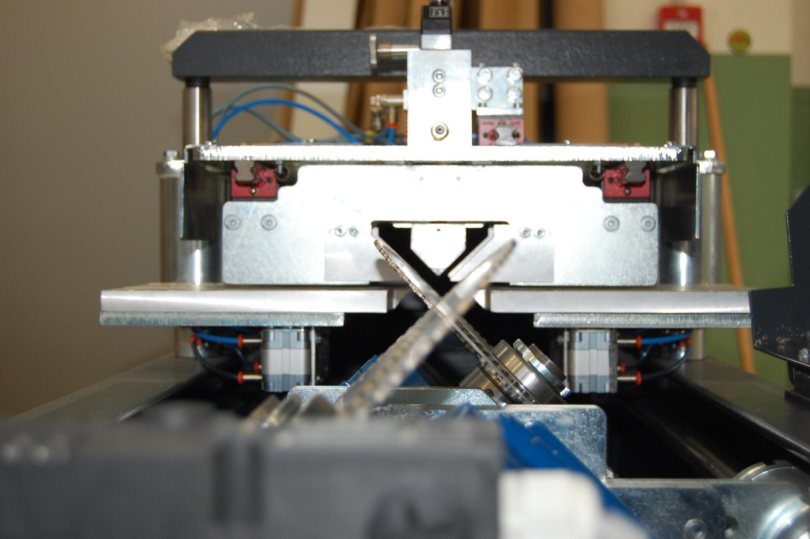 Deze machine is ontwikkeld om simultaan een set glaslatten van dezelfde lengte te verzagen. Uniek is dat de machine uitgerust is met gestuurde klemmen zodat op een zeer eenvoudige manier verschillende types van glaslatten gezaagd kunnen worden. Daarnaast beschikt de machine ook over 4 pneumatische klemmen.